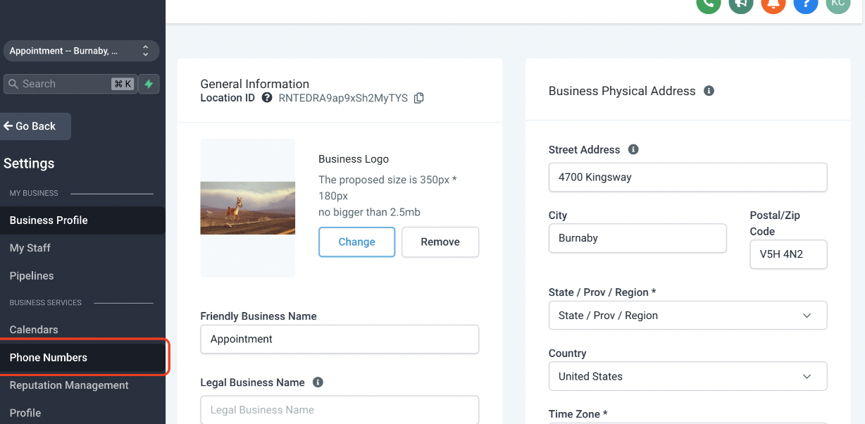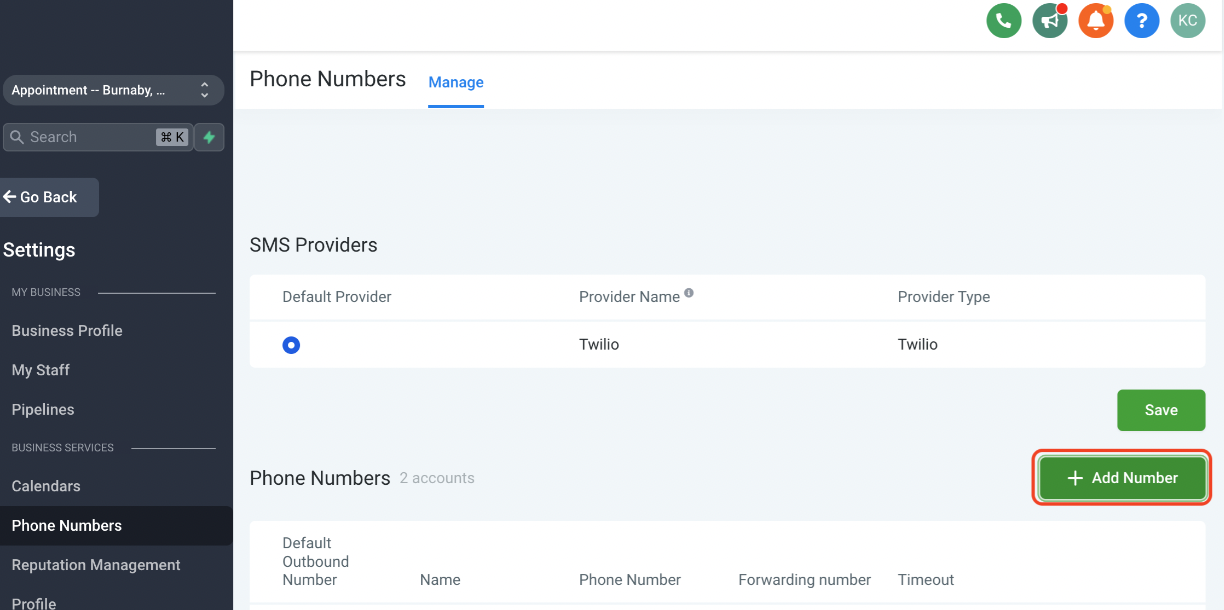 1. Go to "Setting" and click "Phone Numbers"<br>