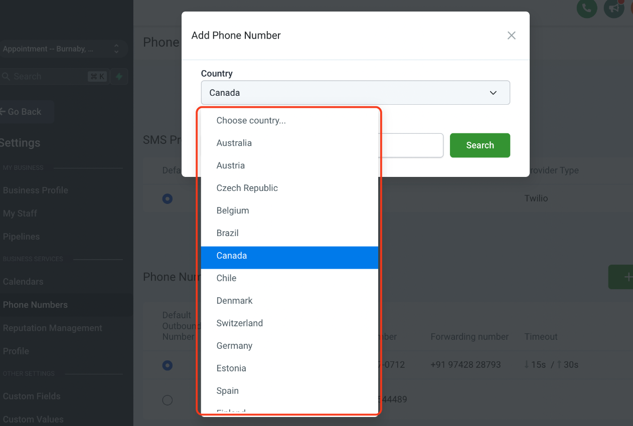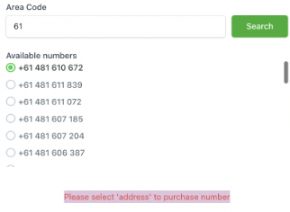 4. Choose a  phone number starting with an area code\ <br>