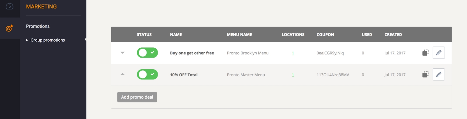Since the menus for multi-location restaurants are being managed at the chain level, so are the promotions.