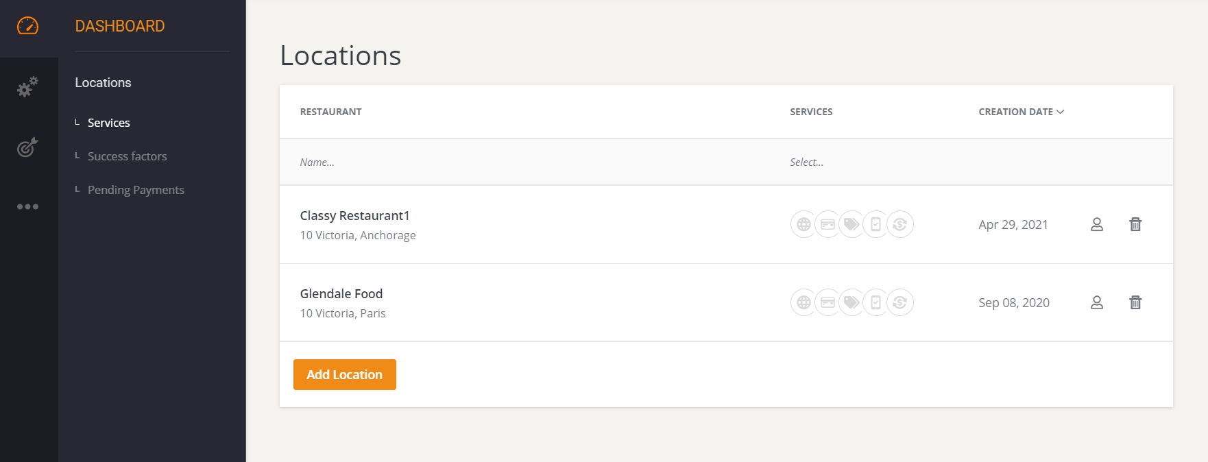 Under the hood, a “parent” account representing the brand is created which groups all the locations together. Interface wise, the parent account is this dashboard: